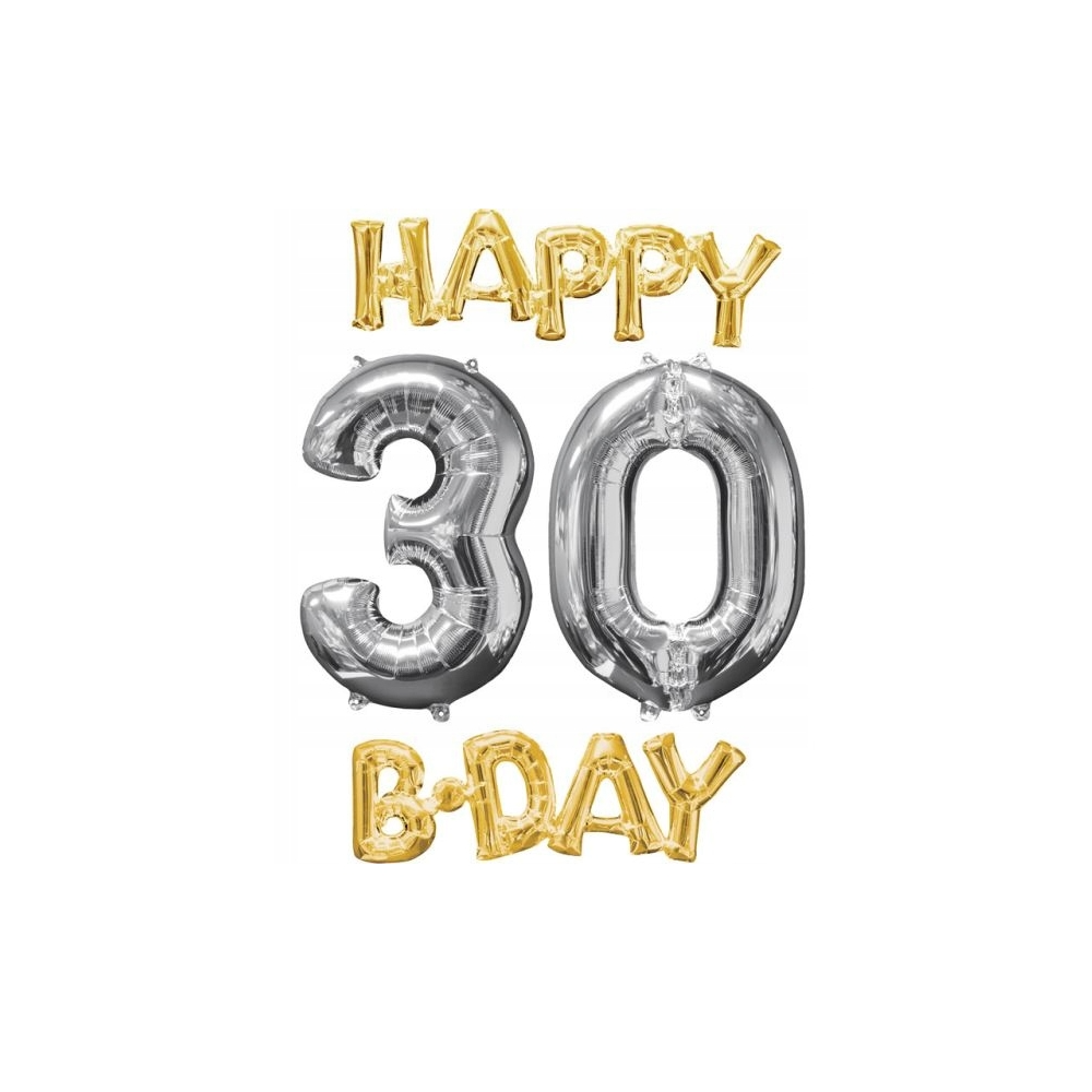 1 ks, Fóliový balón "HAPPY 60 B-DAY" zlato-strieborný, rozmery: HAPPY: 76 cm x 25 cm; B•DAY: 66 cm x 22 cm; číslo 6: 43 cm x 66 cm; číslo 0: 50 cm x 66 cm