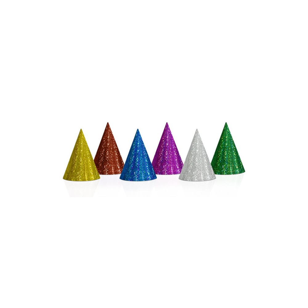 Holografické party čiapky – mix farieb, 16 cm (20 ks)