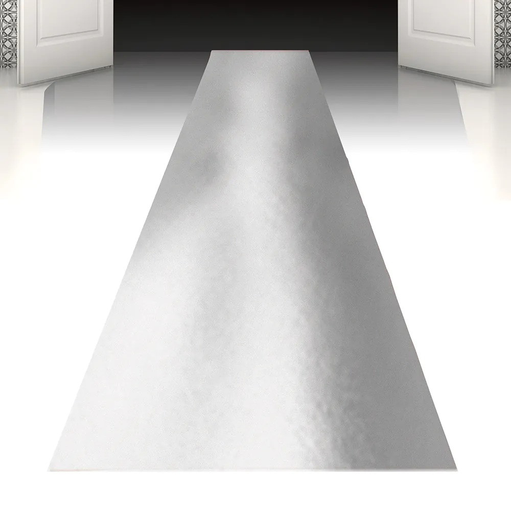 Priprav svoj priestor na špeciálnu udalosť s elegantným strieborným kobercom 450 × 60 cm — ideálny dekoratívny doplnok pre: Je jednoduchý na rozloženie — stačí rozvinúť a hneď dodá vášmu priestoru pocit luxusu a výnimočnosti. Farba: strieborná