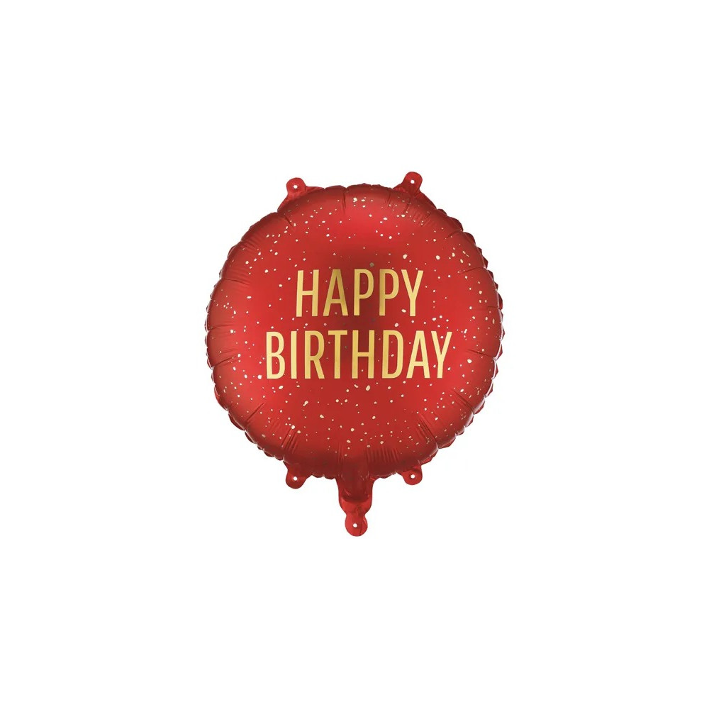 Fóliový balón „Happy Birthday“ – tmavá červený 35 cm