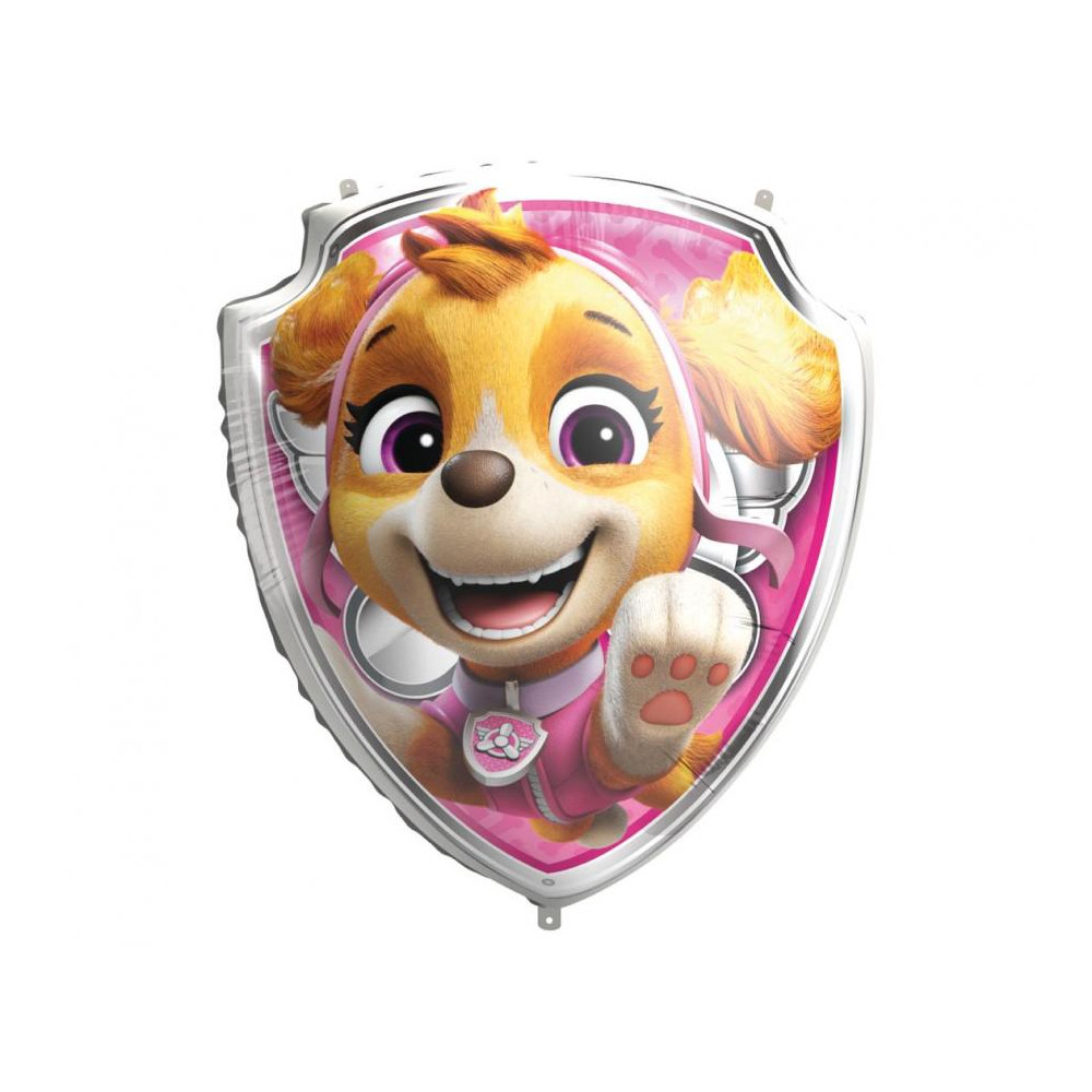 Tento krásny fóliový balón Paw Patrol Skye s rozmermi 68 × 75 cm je ideálny doplnok na každú detskú oslavu. Balón má tvar štítu s motívom odvážnej pilotky Skye zo známeho animovaného seriálu Tlapková patrola (Paw Patrol).