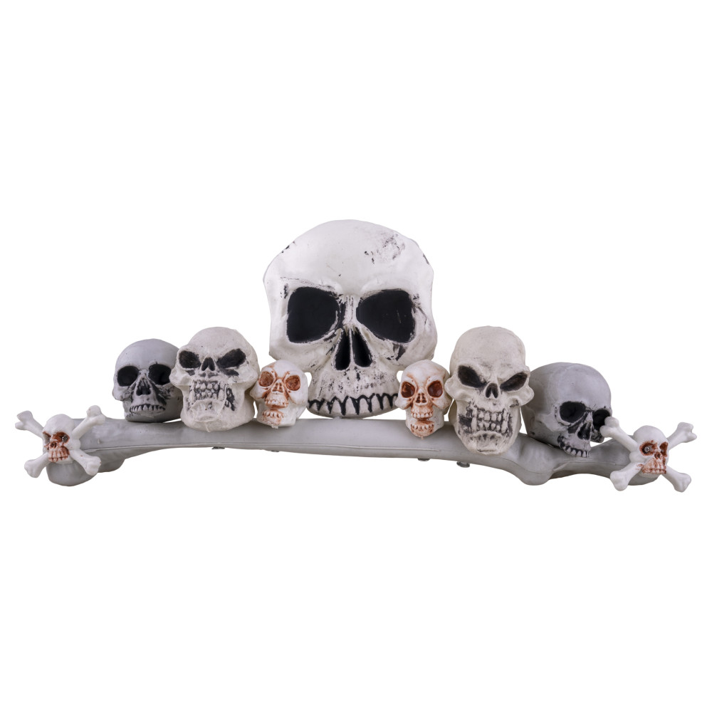 Táto dekorácia zobrazuje realisticky spracovanú ľudskú lebku pripevnenú na dlhú kosť, čo vytvára dojem strašidelného artefaktu. Je vyrobená z kvalitného PVC materiálu, ktorý zaručuje jej odolnosť a dlhú životnosť. S rozmermi 41 × 7,5 × 19 cm je ideálna na umiestnenie na stôl, polici alebo ako súčasť väčšej dekorácie.