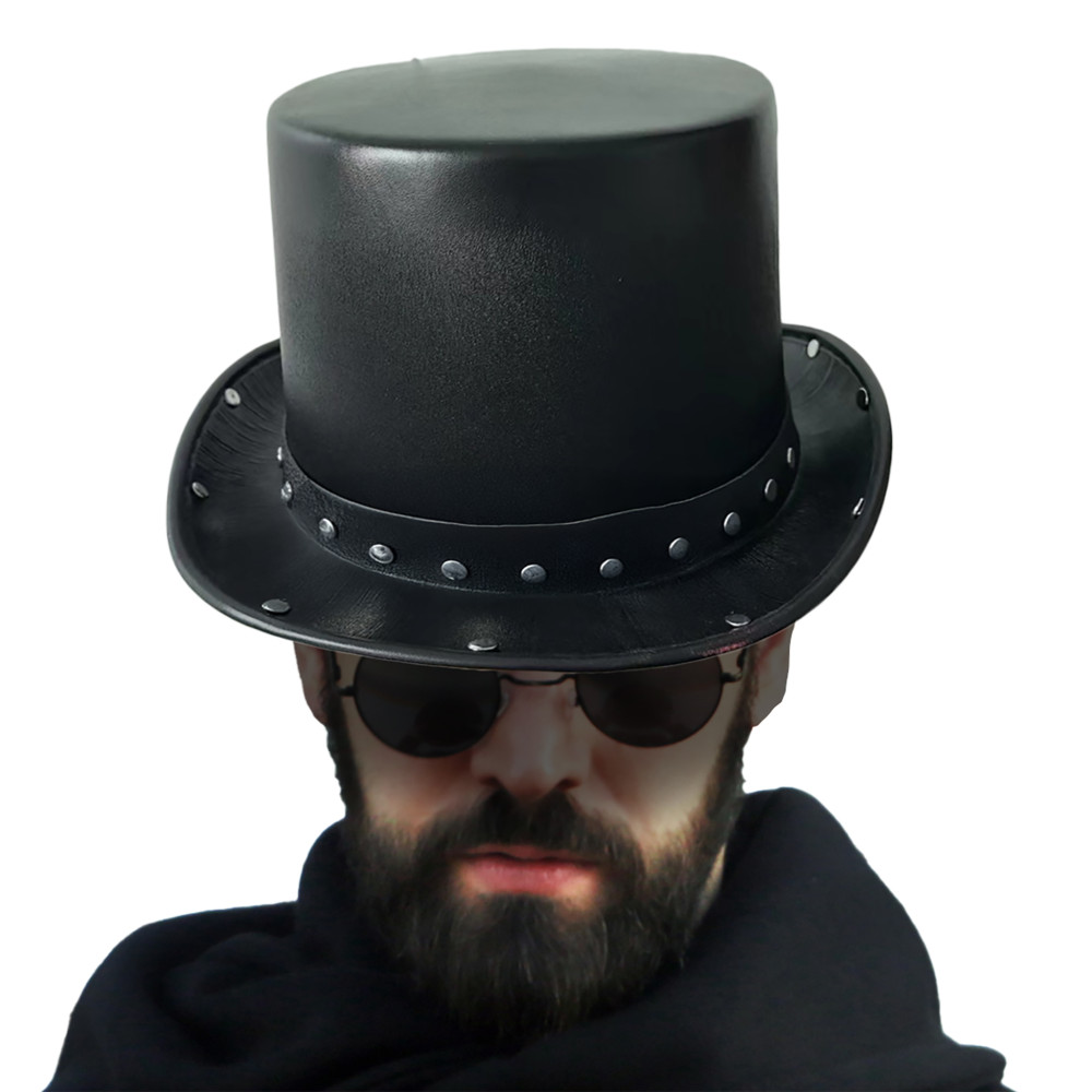 1 ks, Kožený cylindrový klobúk – čierny, unisex