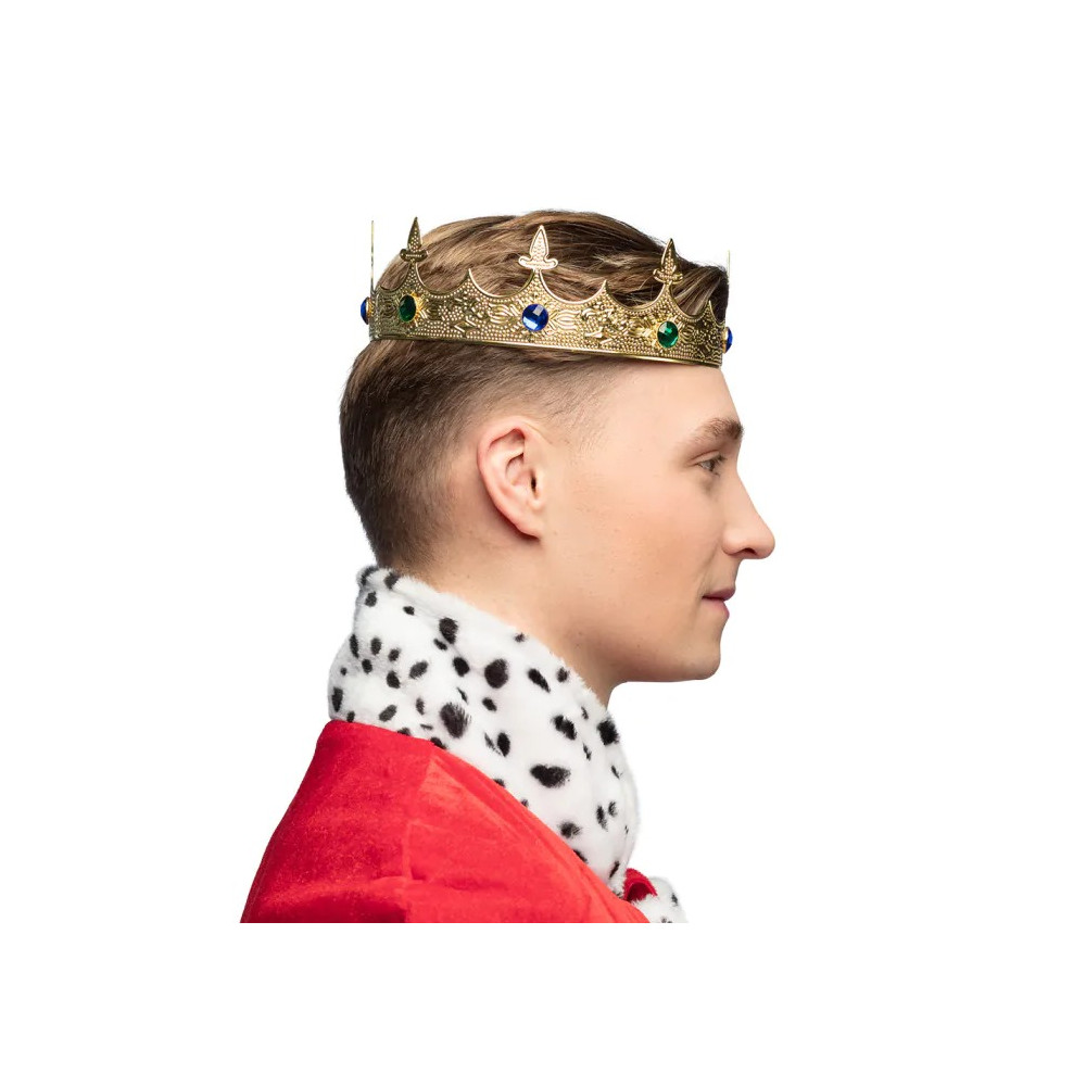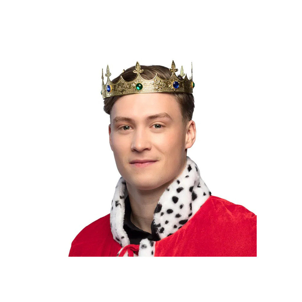 Doprajte svojmu kostýmu alebo slávnostnému outfitu noblesný doplnok – kovovú korunu “Royal / Króla” od značky Boland. Táto elegantná koruna v zlatej farbe je ozdobená farebnými kamienkami, ktoré vytvárajú trblietavý efekt pri osvetlení. fnac.com+2Partywinkel+2