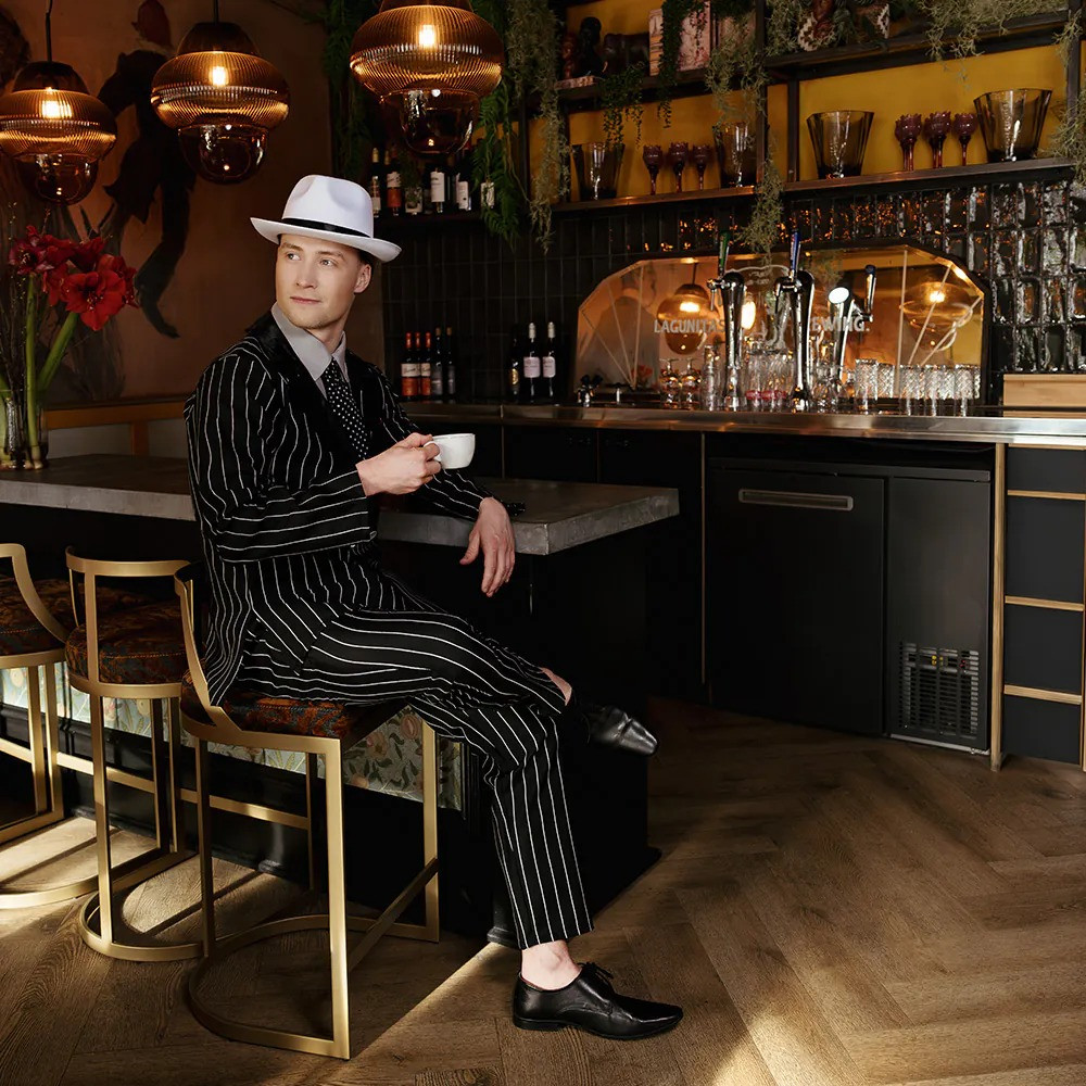 Kostým The Boss M/L je pánsky gangsterský kostým pre dospelých. Obsahuje sako, nohavice, kravatu a golier pre autentický retro mafiánsky outfit