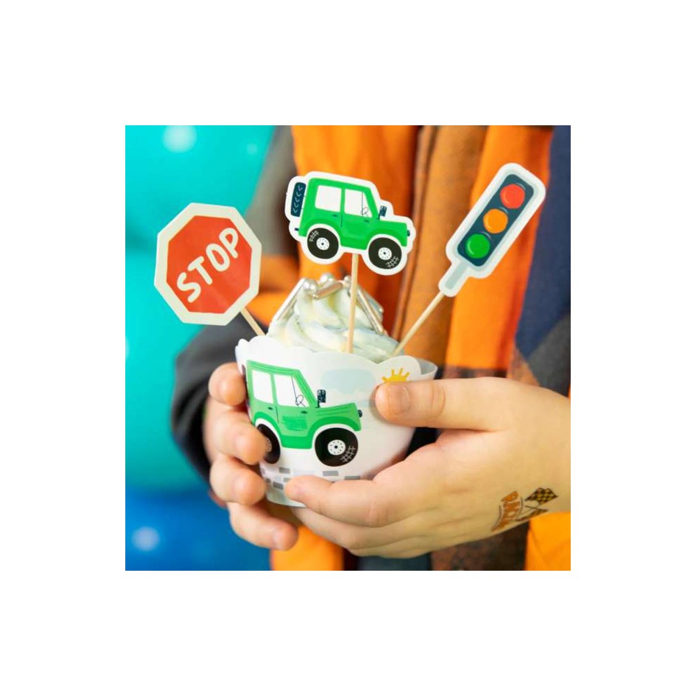 128 ks v balení Zapichovacia ozdoba na tortu Autíčka, 8,5 - 10,5 cm