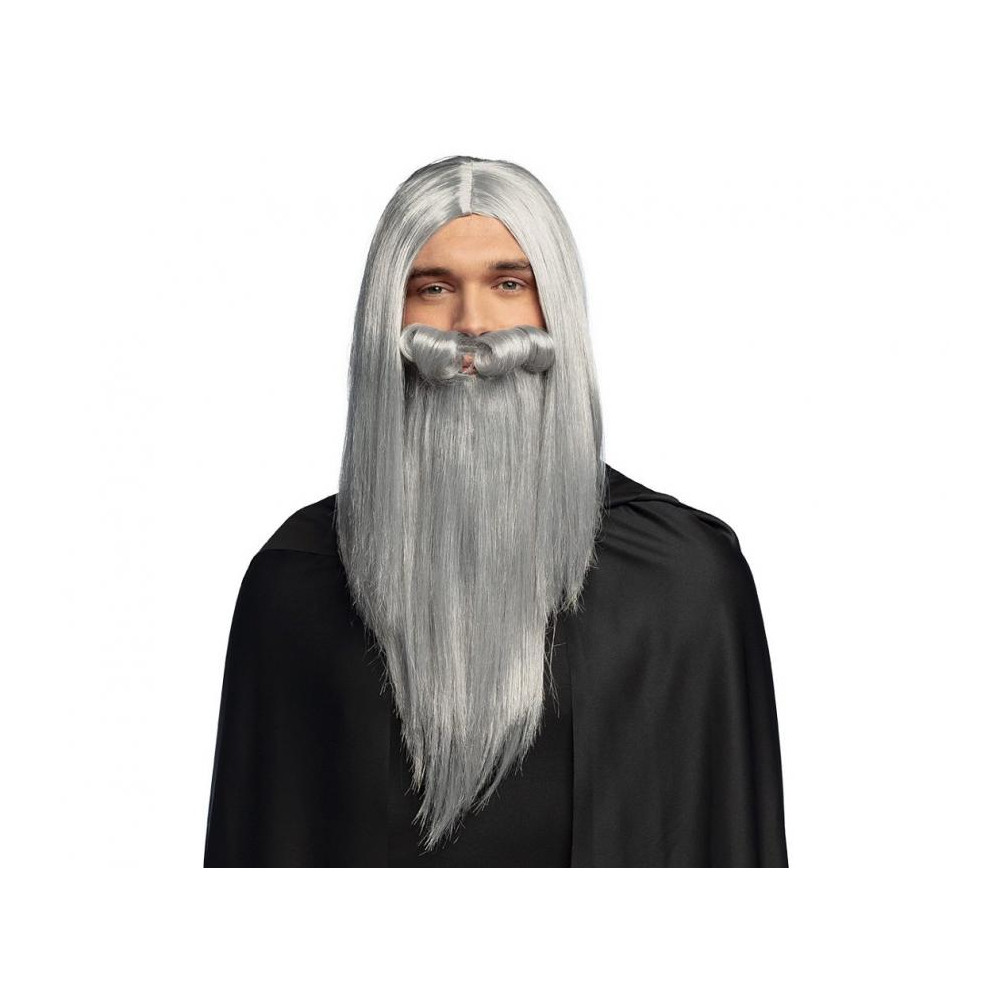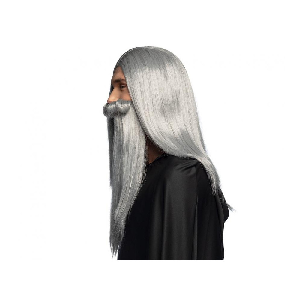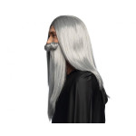 Dizajn: dlhé, rovné šedé vlasy s výraznou bradou, ideálne pre čarodejnícke a fantasy kostýmy